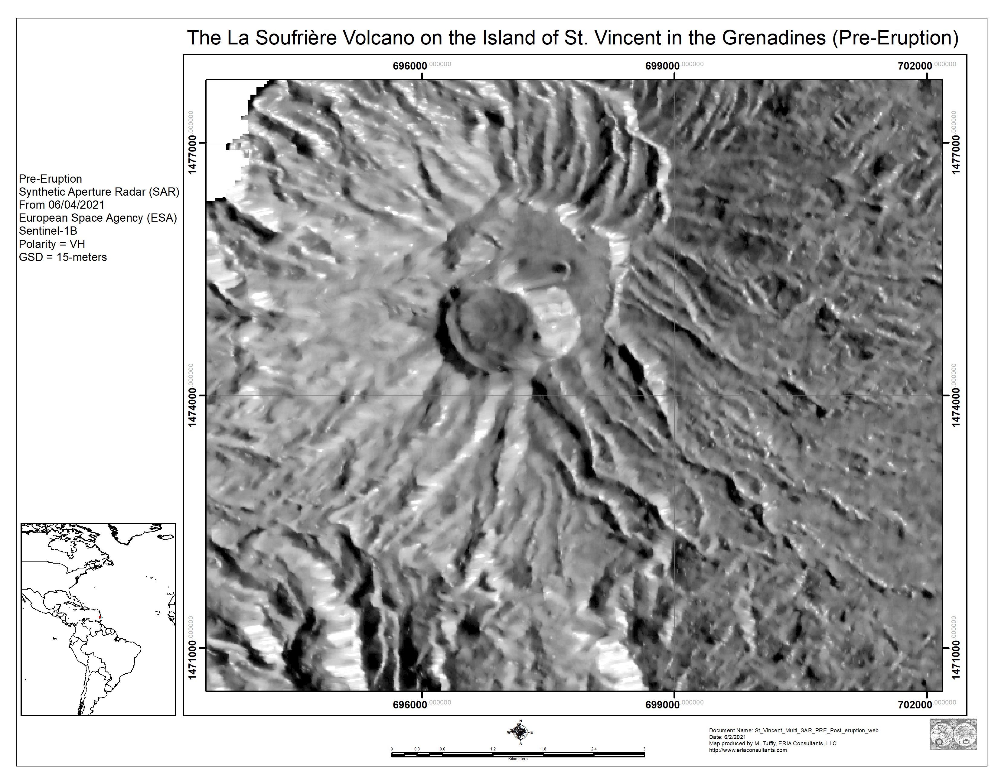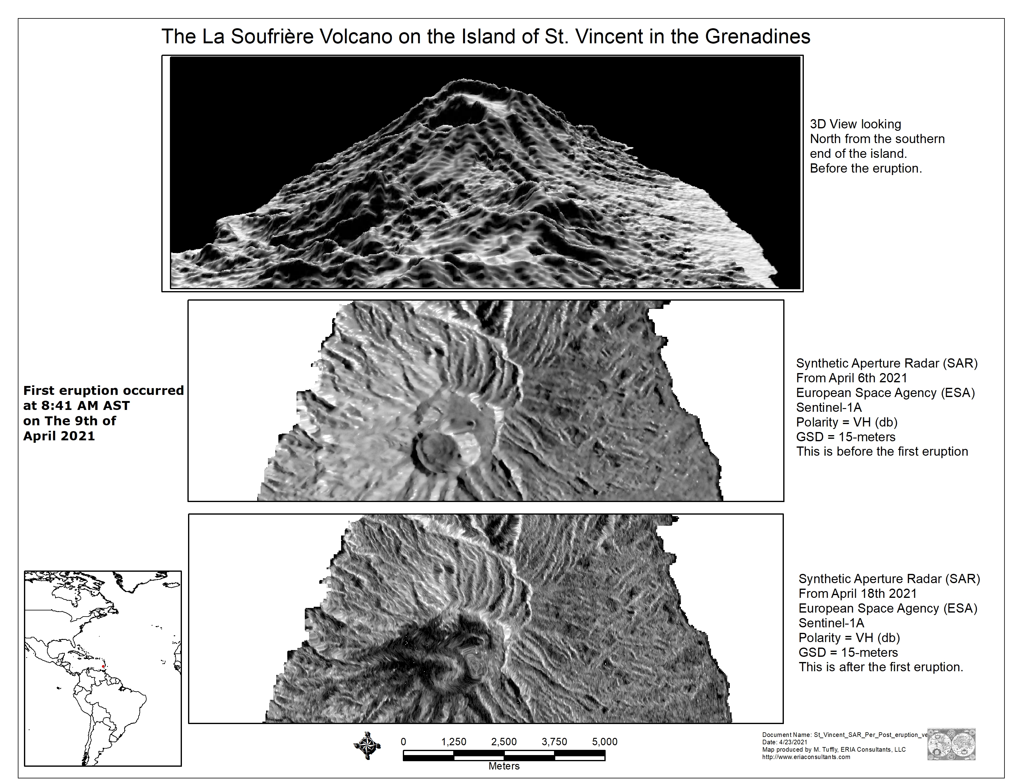 La Soufriere Volcano Eruption on the Island of St. Vincent in the Grenadines using Synthetic Aperature Radar (SAR) (April 9th 2021) Static Version