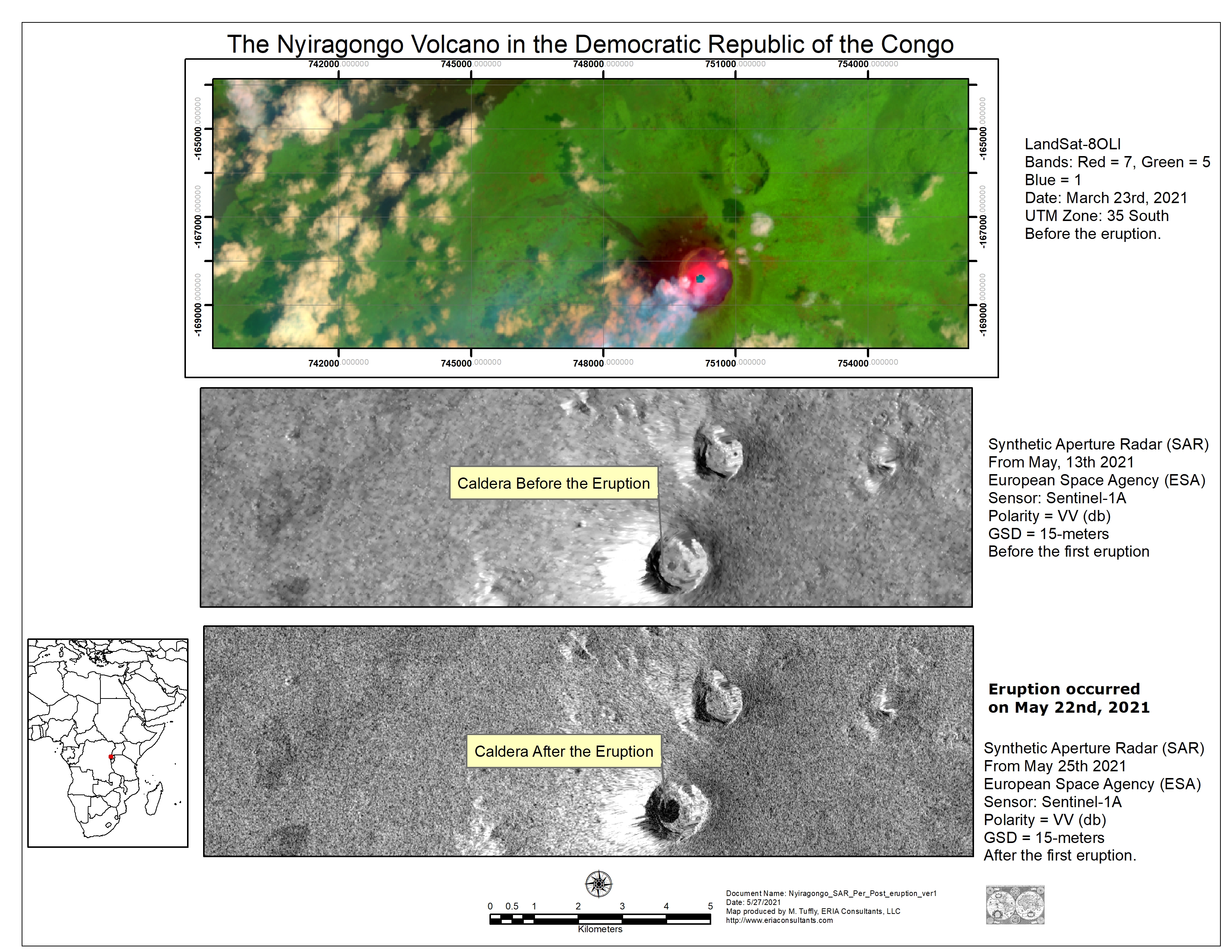 Mount Nyiragongo Volcano Eruption in the Democratic Republic of the Congo using Synthetic Aperature Radar (SAR)(May 22nd 2021) Static Version